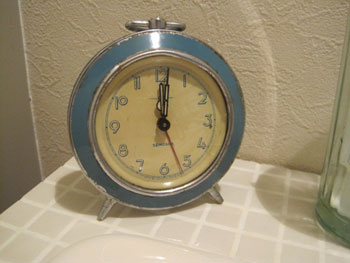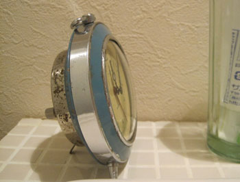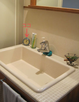 我が家の洗面台での隅で、目立たないように、でも、きっちりと時を知らせてくれる。